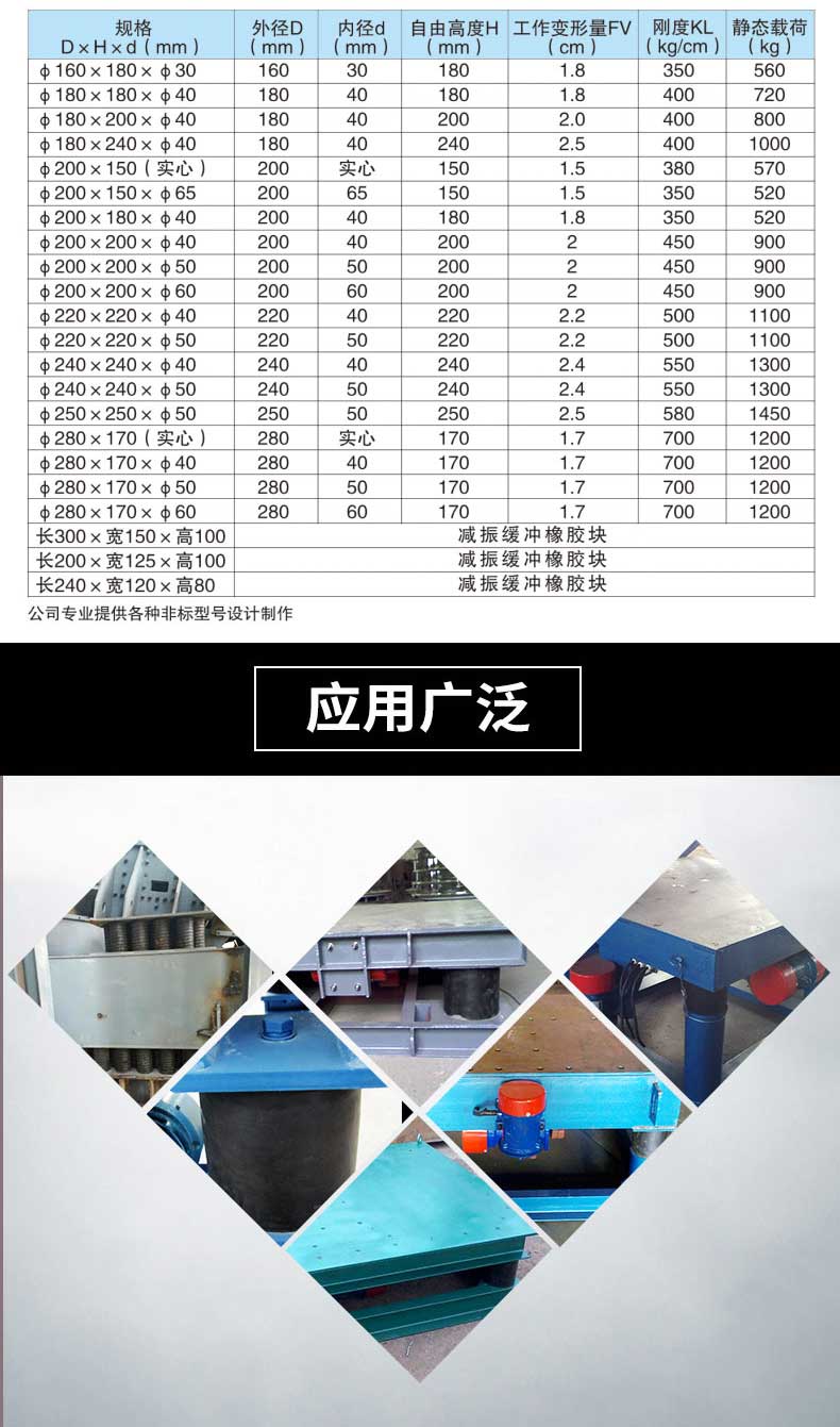 橡膠彈簧:是一種高彈性體,制作材料有普通橡膠。橡膠彈簧彈性模量小,受載后有較大的彈性變形,借以吸收沖擊和振動。它能同時受多向載荷,但耐高溫性和耐油性比鋼彈簧差。如有特殊要求可用耐油橡膠制成。該產(chǎn)品減振效果好,共振領域小,使用壽命長,成本低,還有良好的耐寒性,優(yōu)良的氣密性,防水性,電絕緣性,是減振的最佳選擇。